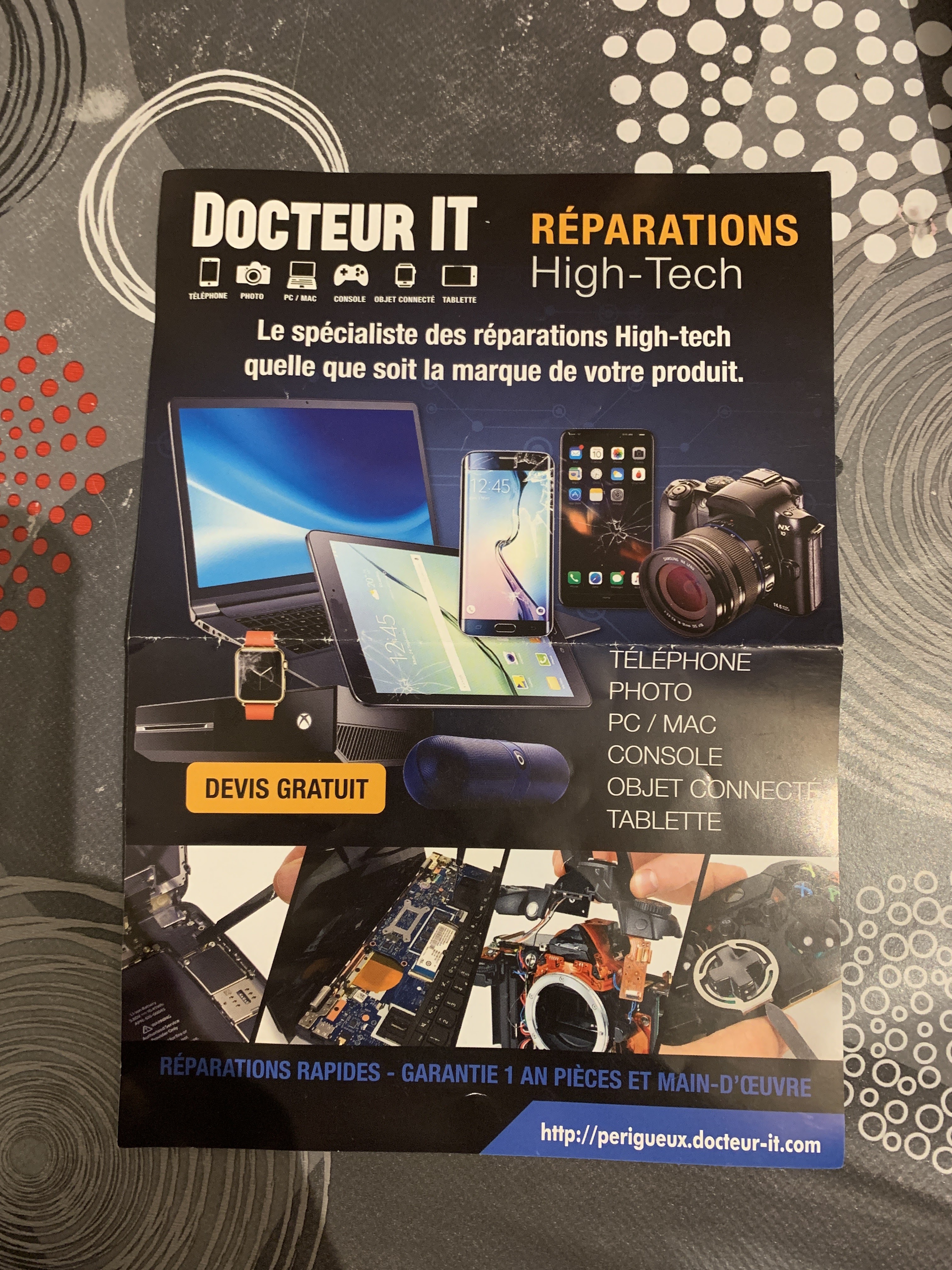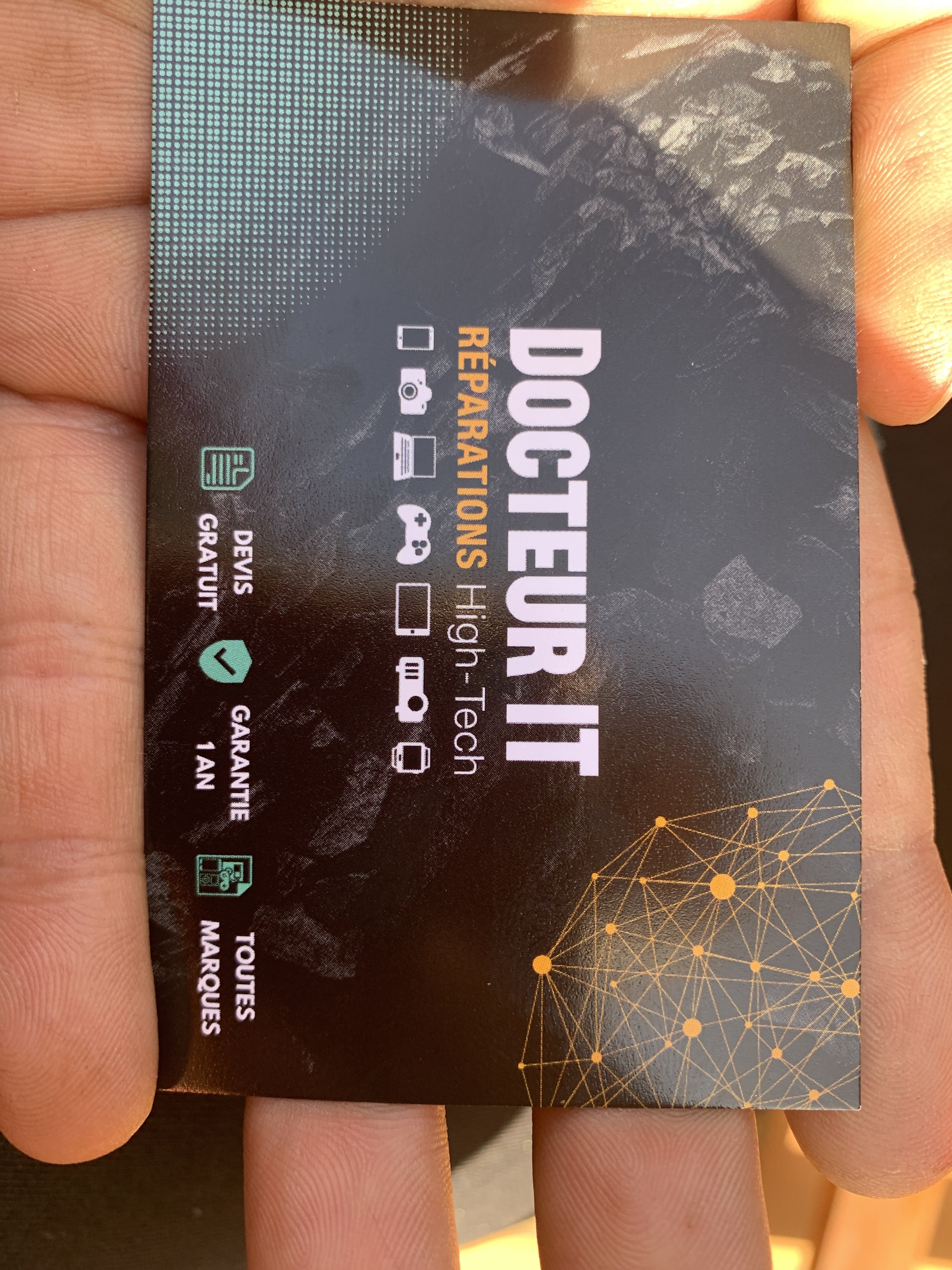 Merci à Mathieu, d'être resté en plus de ses heures de travails, pour changer l'écran de mon téléphone cassé. Merci aux professionnels qualifiés de Docteur It de Boulazac. Bon rapport qualité-prix.
